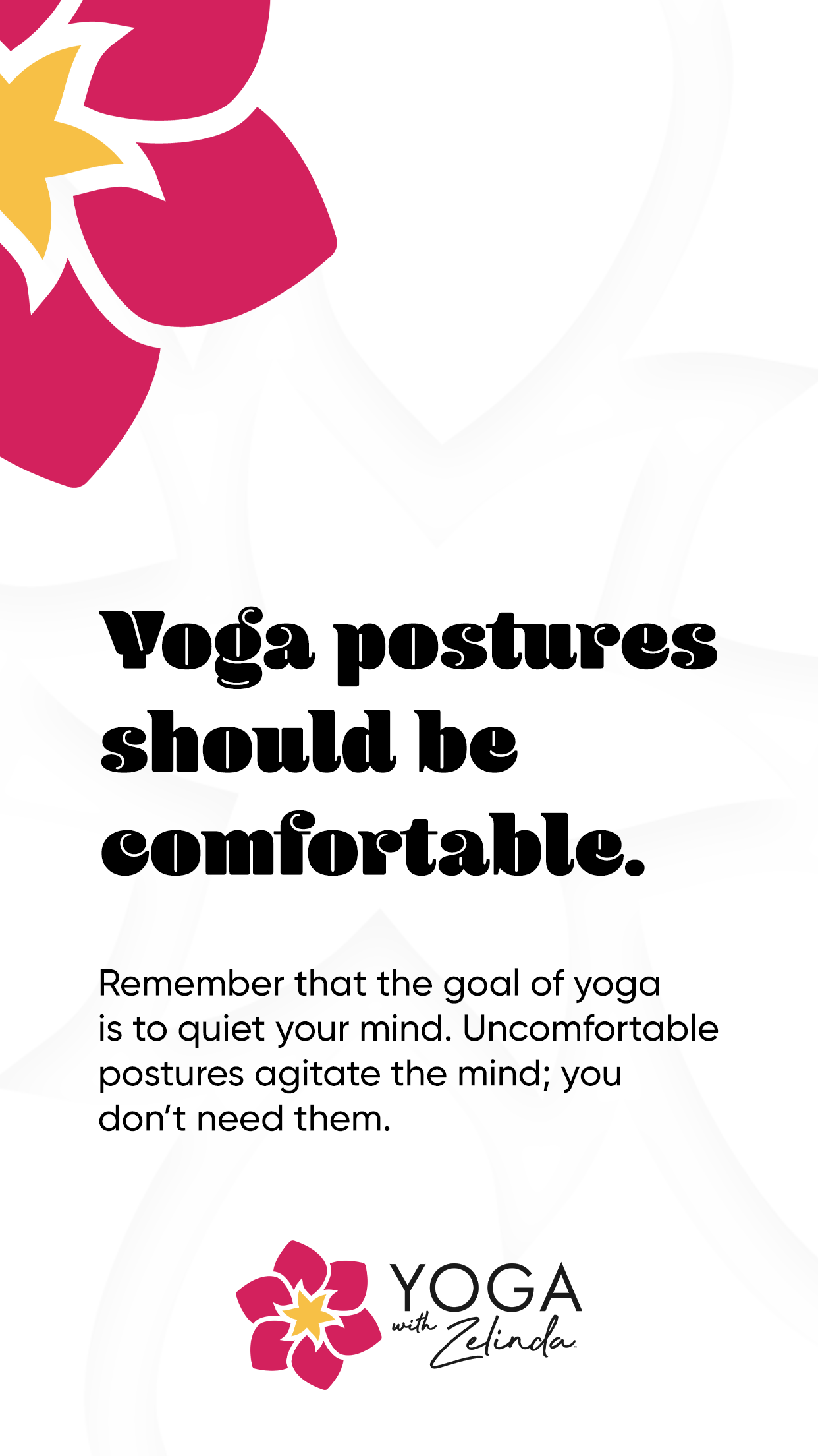 Remember that the goal of yoga is to quiet your mind. Uncomfortable postures agitate the mind; you don’t need them.