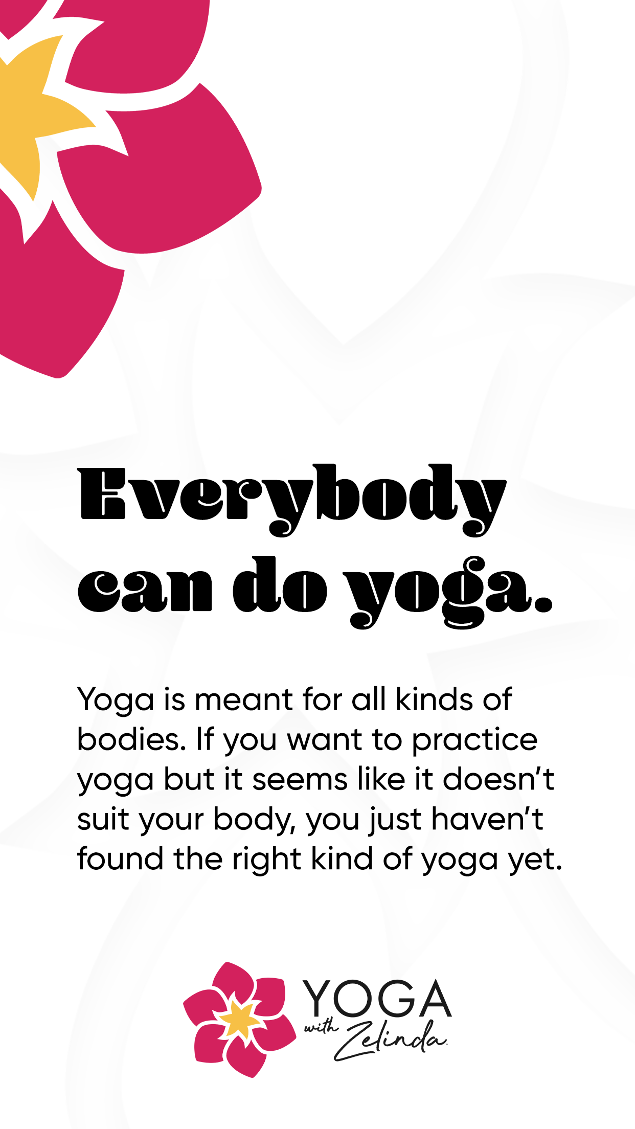 Yoga is meant for all kinds of bodies. If you want to practice yoga but it seems like it doesn’t suit your body, you just haven’t found the right kind of yoga yet.