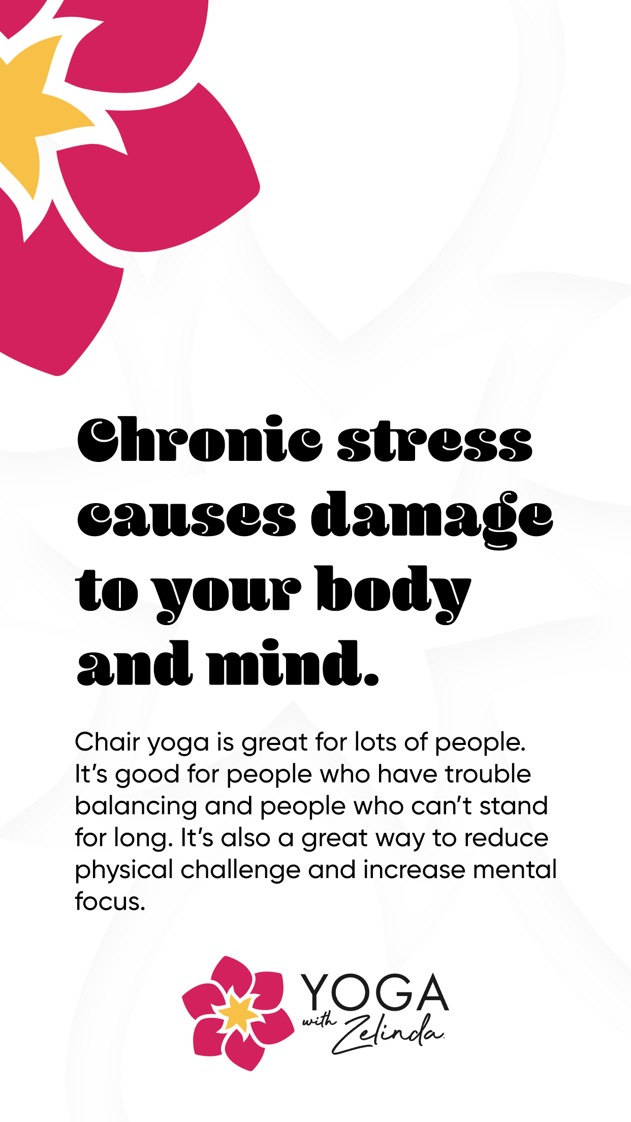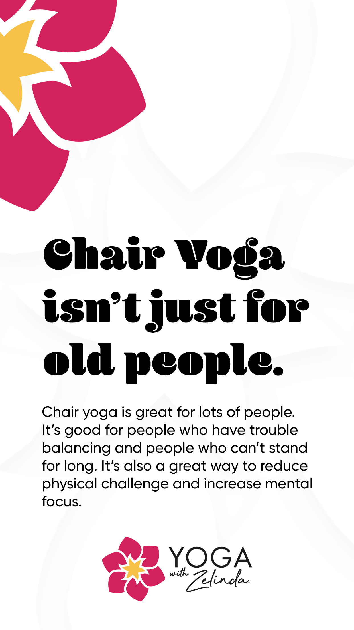 Chair yoga is great for lots of people. It’s good for people who have trouble balancing and people who can’t stand for long. It’s also a great way to reduce physical challenge and increase mental focus.